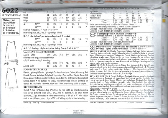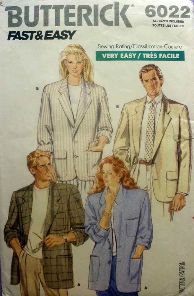Butterick 6022 Sewing Pattern Size S Xl Unisex Patterns Etsy Sewing Pattern Sizes Mens Jacket Pattern Vintage Sewing